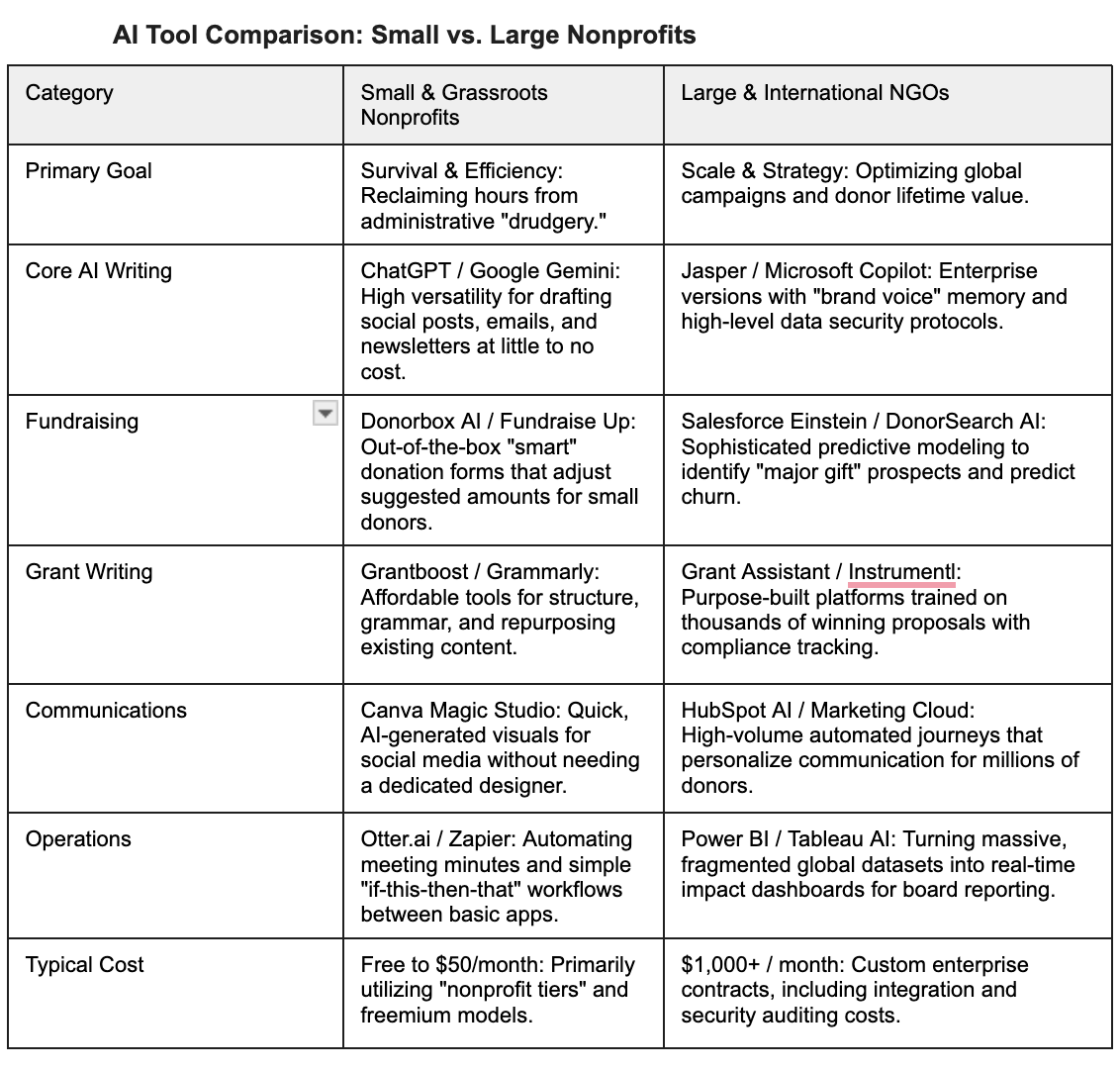 The adoption of AI in the nonprofit world is characterized by a move toward better efficiency. Leading the charge are generative tools like ChatGPT and Claude, which have become the unofficial drafting partners for grant writers and communications officers. By automating the first pass of complex grant applications or translating technical research into accessible donor newsletters, these organizations are reclaiming hundreds of hours previously lost to administrative heavy lifting.